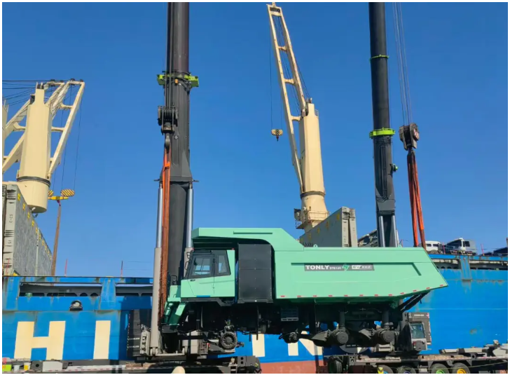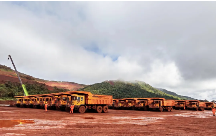 在这场跨国矿业工程中,同力重工的非公路宽体自卸车身影贯穿项目建设关键阶段。2024 年,同力重工 40 台 TL885A 非公路宽体自卸车率先进驻项目现场,在日均作业24小时的高强度施工中,凭借“经济、适用、可靠、高效”的核心优势,承担起矿山剥离、采矿等基础建设任务。