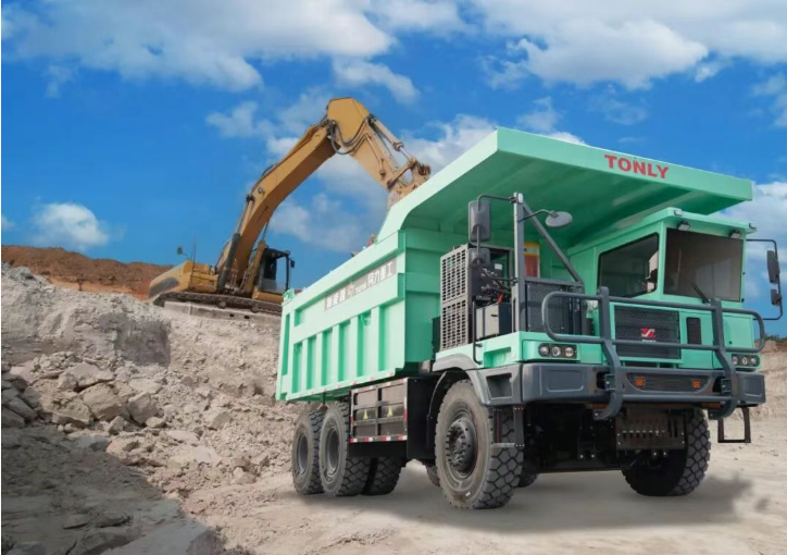 作为同力重工绿色智能转型的核心产品,TLE105纯电动宽体自卸车具有“零排放、高效率、低能耗”的核心优势,单车载重70吨,双电机驱动,搭载被誉为“大国重器”的黄金底盘,是目前70吨级纯电宽体自卸车中最早批量应用的车型。TLE105已完成海拔5500米及高寒、高热工况验证,运行稳定、续航充足,可有效适配高原矿山场景,既能满足金矿运输的高效需求,又能实现绿色环保运营,助力项目打造绿色智能矿山标杆。